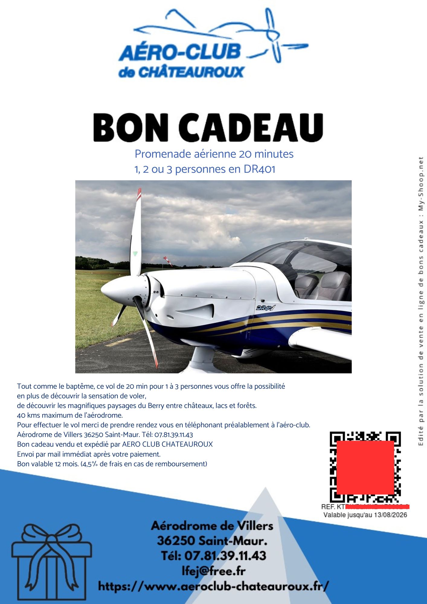 Ces bons cadeaux personnalisés permettent à l’Aéro-Club de séduire une nouvelle clientèle à la recherche d’activités insolites, tout en simplifiant l’accès à ses prestations. Offrir un bon cadeau de l’Aéro-Club de Châteauroux, c’est offrir un souvenir fort, une émotion, et le privilège de voler.